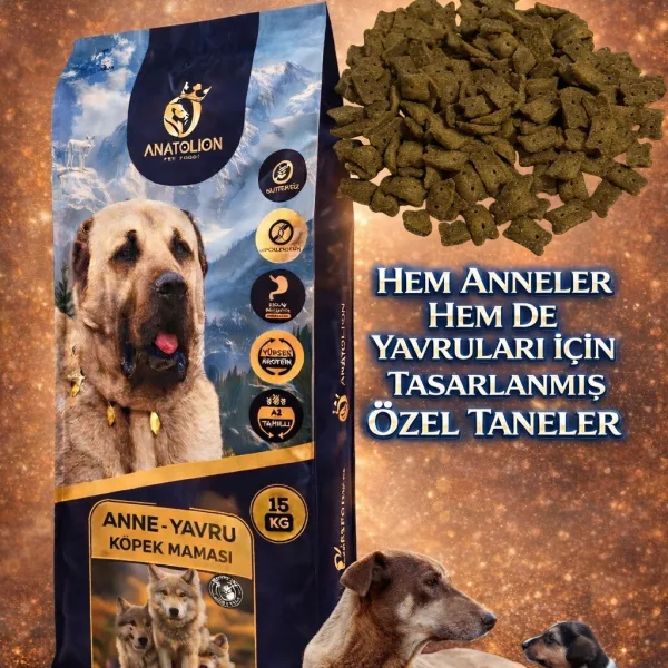 Anatolion Super Premium Kuzu Etli Anne – Yavru Köpek Maması, gebelik, emzirme ve sütten kesilme dönemindeki anne köpekler ile yavruların artan besin ihtiyaçlarını karşılamak üzere özel olarak formüle edilmiştir.